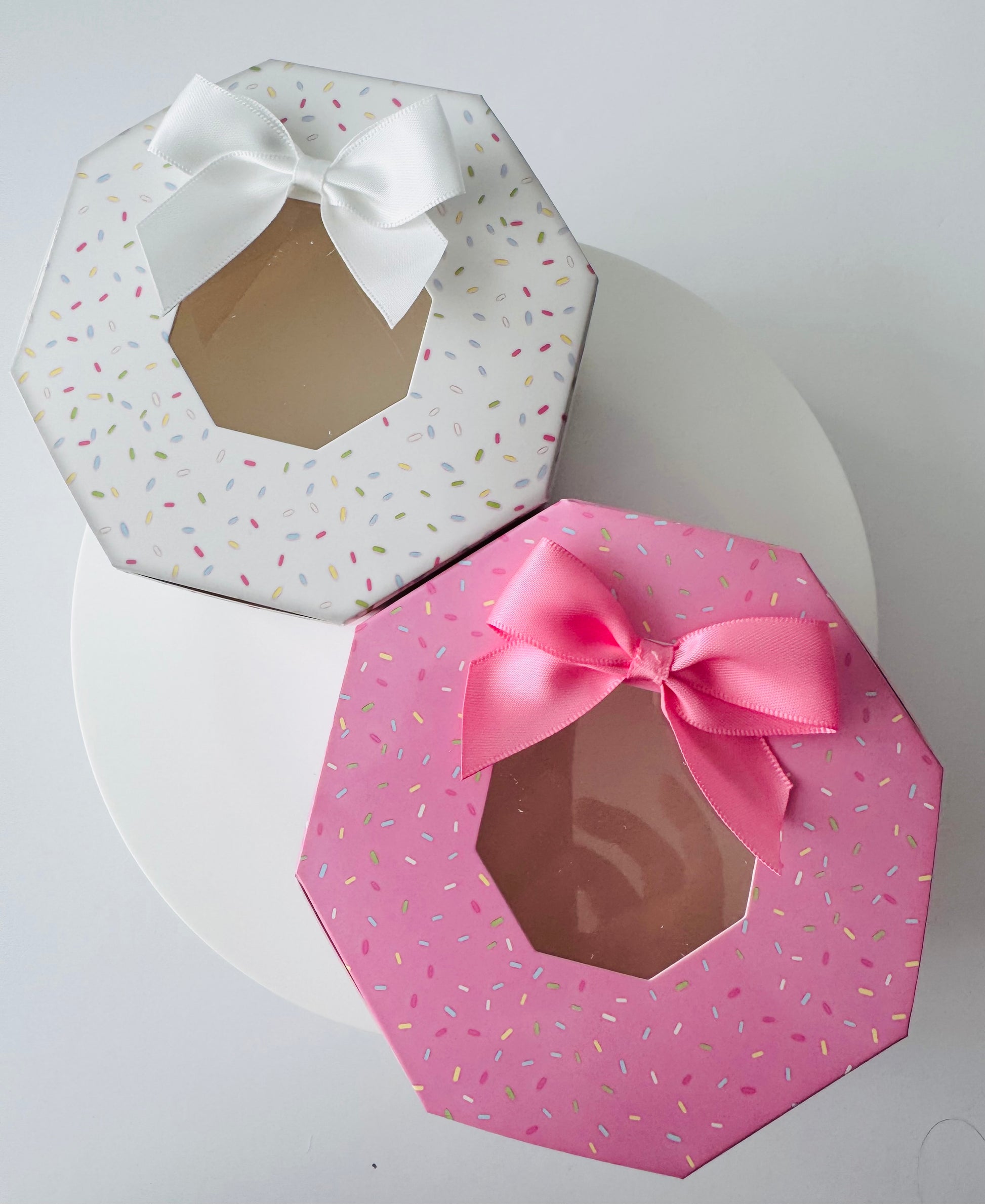 Doughnut Sprinkle Donut Themed Favour Boxes - Pink and White
